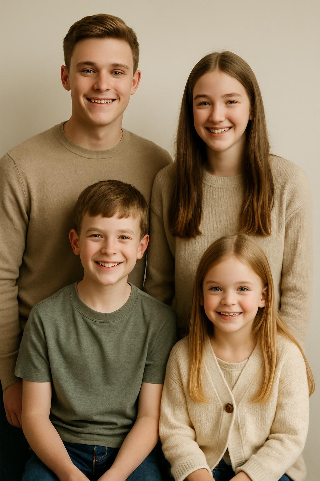 Enjoy an hour and half of portrait time either in the studio or on location. We can create a mix of portraits that focus on your family as a whole, and then the children together and individually.